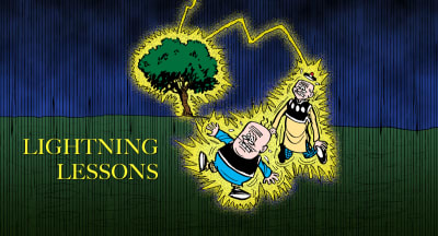 Old Master Q provides many comical examples perilous lessons he has learned from lightning storms.